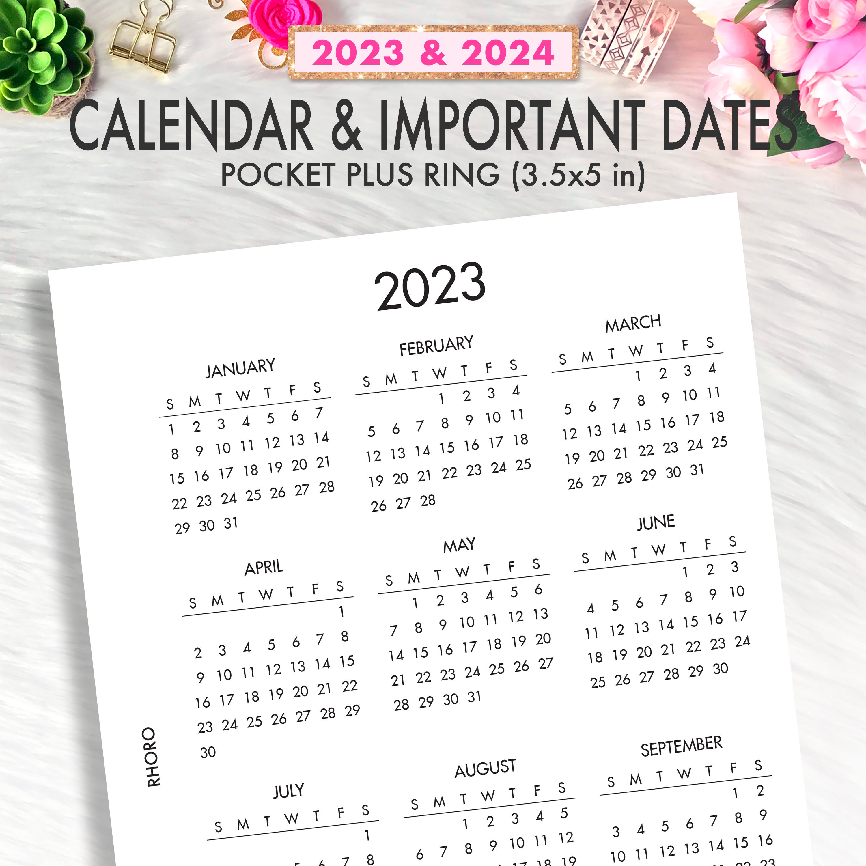 Pocket Plus Rings Printable Insert 2023 2024 Calendar Date Etsy Sweden